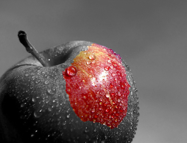 He is unaware that he has the Capacity to See Beyond and is seeing the red color of the apple for the first time while. Its in our nature to want the things we see.